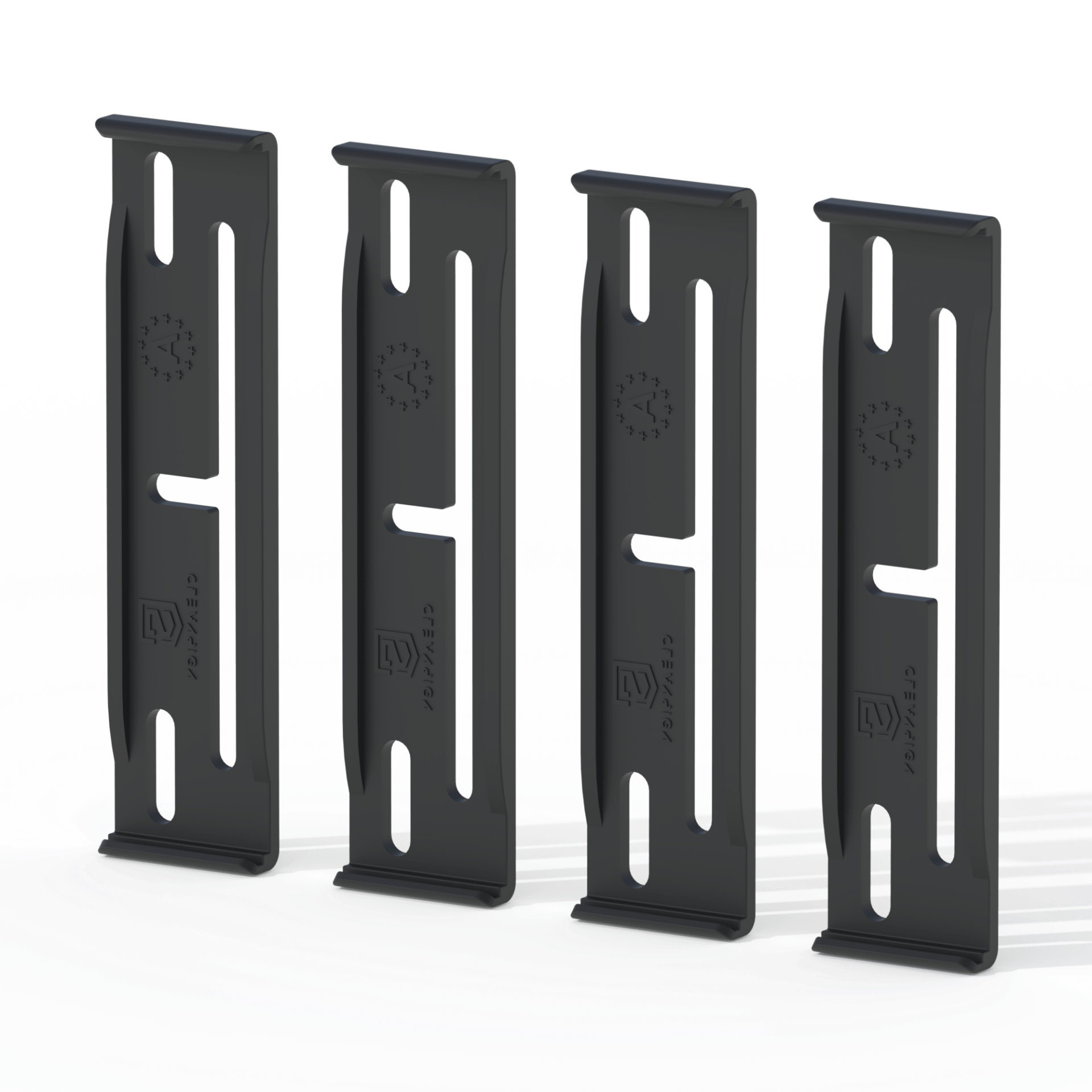 In den meisten Fällen sind die Bohrungen von der vorherigen Kennzeichenhalterung vorhanden. Diese sollten auch genutzt werden. Bei neuer Montage sollte man den Clip mit jeweils einer Schraube fixieren. Dabei ist zu beachten das man den Halter nur „handfest“ anschraubt. Die Clips sollten ca. 5cm bis 8cm vom äusseren Kennzeichenrand positioniert sein. Beim Einlegen des Kennzeichens ist darauf zu achten, dass es mittig und unten exakt in der Rille platziert ist. Danach können sie mit dem Daumen direkt vor der oberen Rille das Kennzeichen andrücken, bis es deutlich hörbar einrastet.